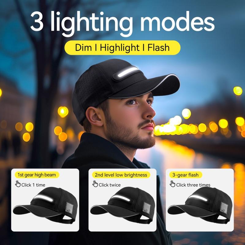 BQ-TD3 Rechargeable LED Baseball Cap with 3 Lighting Modes for Outdoor Adventures