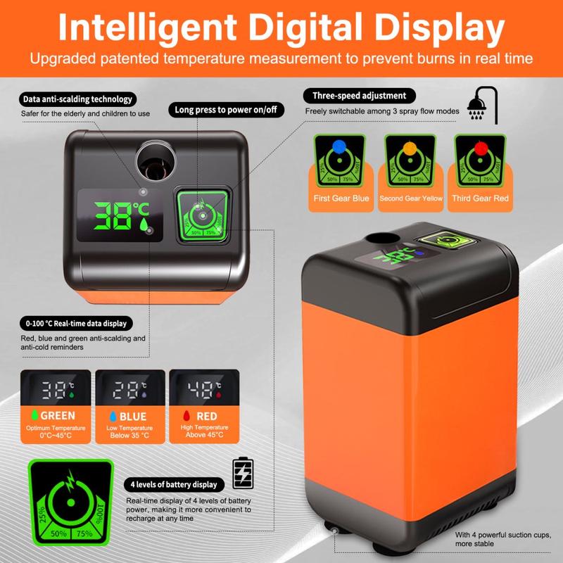 Electric Camping Shower with Smart Temperature Monitoring and 3 Spray Modes - 7800mAh