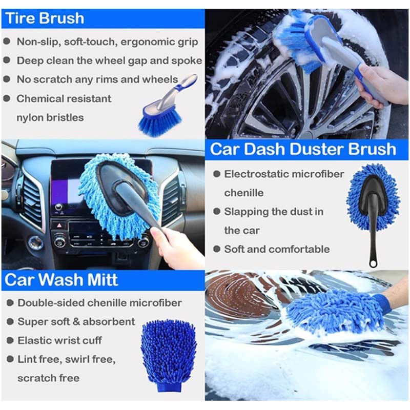 - Comprehensive cleaning tool set for interior and exterior of vehicles