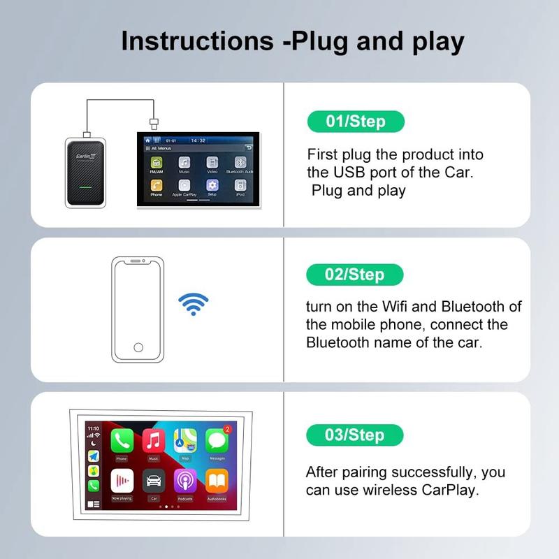 - Plug and Play Design: Upgrade your existing wired CarPlay function to wireless without any disassembly or complex setup.
