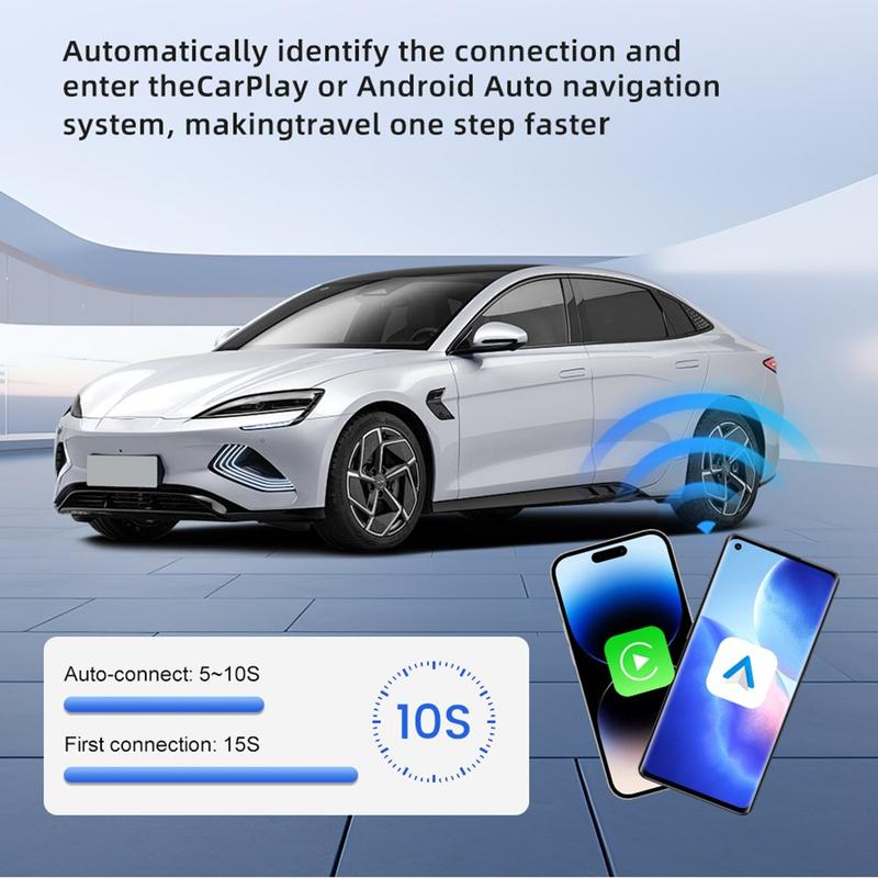 - Wireless Upgrade: Instantly convert your car’s wired CarPlay or Android Auto into a wireless connection.