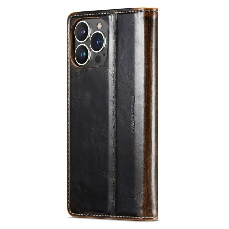 CASEME 003 Series PU kožené pouzdro na telefon pro iPhone 14 Pro Max, nárazuvzdorné, retro vosková textura s magnetickým zavíráním, stojánek na telefon, stojánek