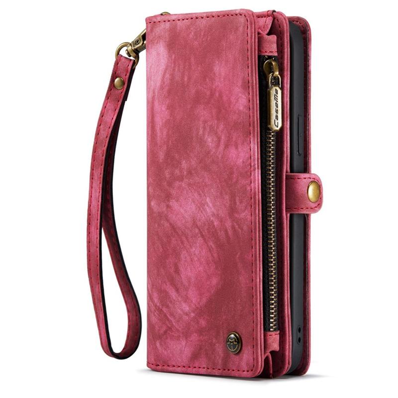 CASEME 008 Series pro iPhone 14 Plus Multifunkční odnímatelné magnetické pouzdro na telefon Dělený kožený stojánek Kapsa na zip Kryt na peněženku s popruhem