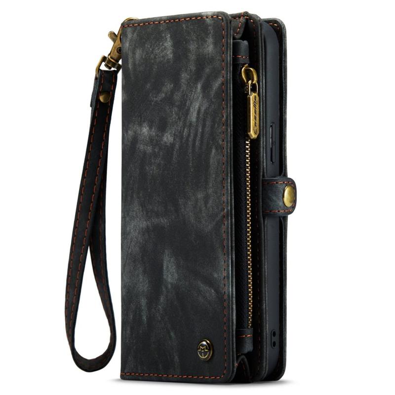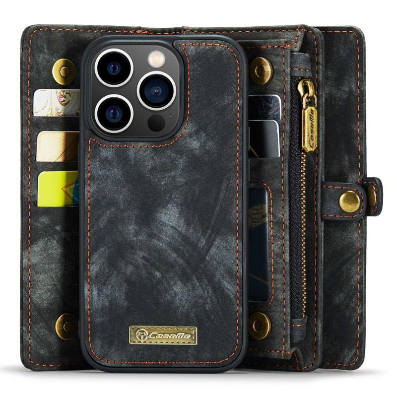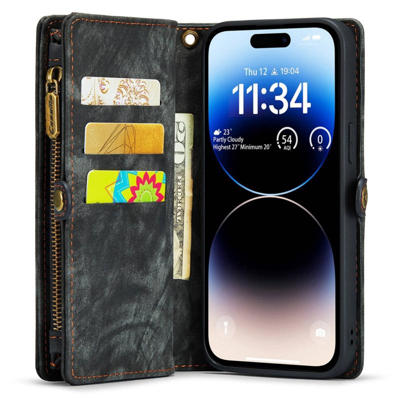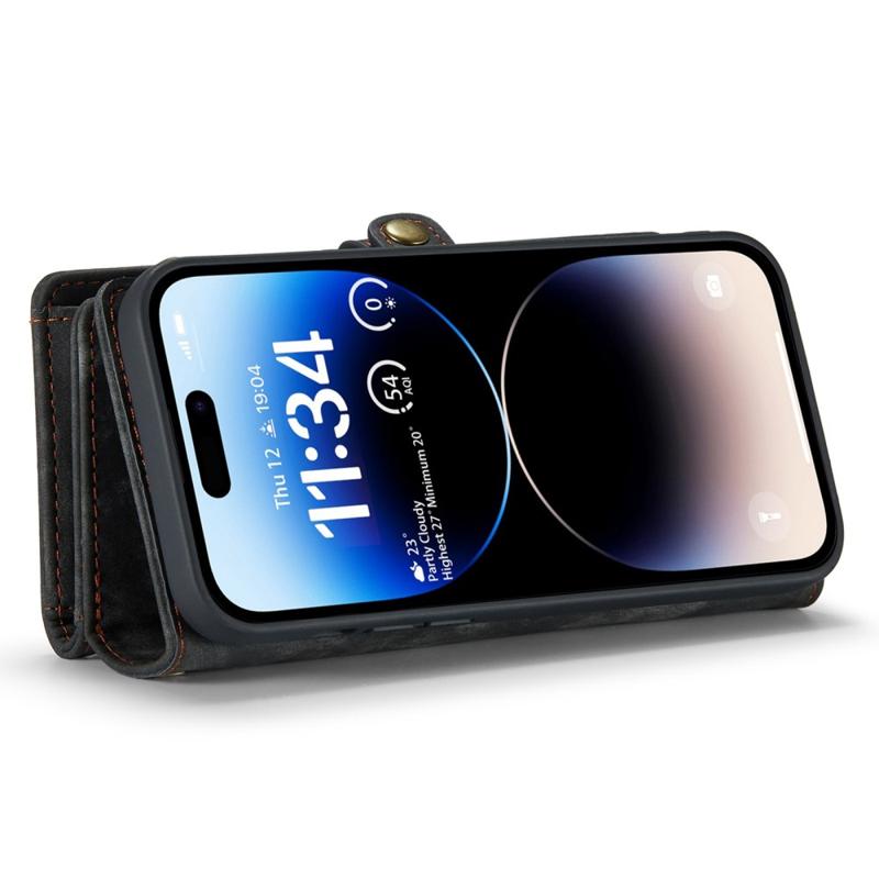 CASEME 008 Series pro iPhone 14 Pro Max Multifunkční odnímatelné magnetické pouzdro na telefon Dělený kožený stojánek Kapsa na zip Kryt na peněženku s popruhem