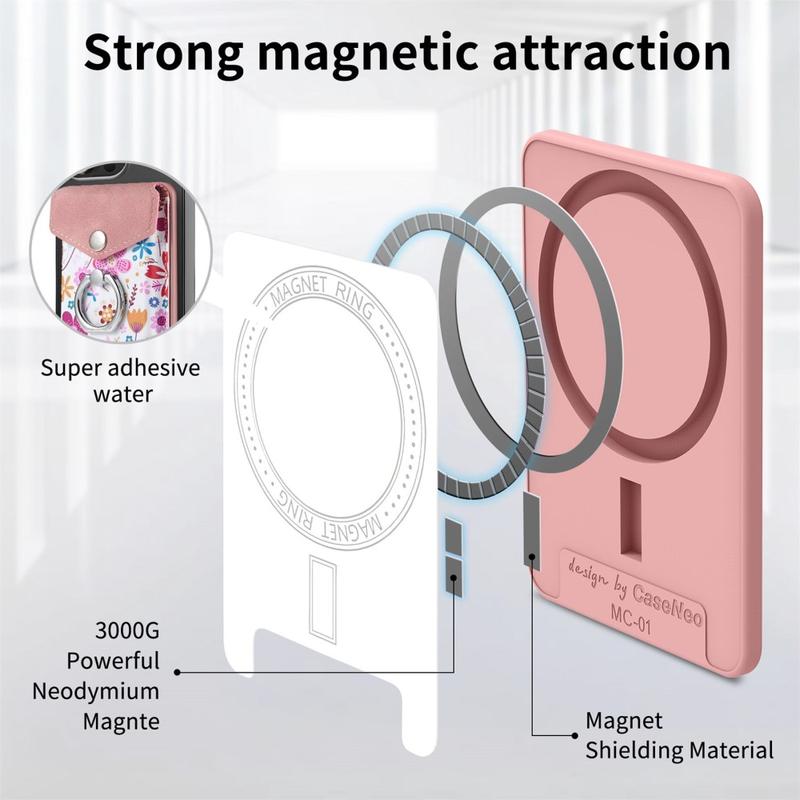 CaseNeo MC-W3 Magnetic Card Holder with Ring Stand - Patterned Wallet Compatible with MagSafe