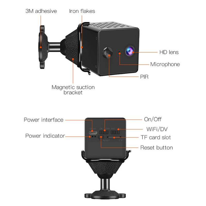 - Battery and Backup - A 1500 mAh cell powers the unit during short outages; footage saves to a TF card (up to 256 GB) or the optional cloud.