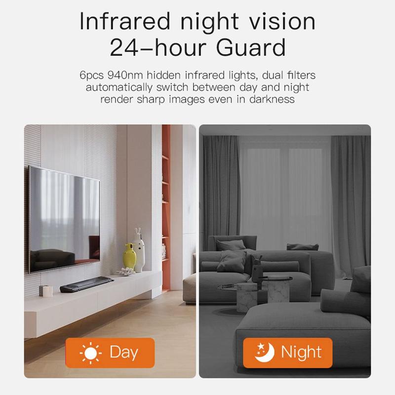 - Night Vision Two Ways - Six invisible 940 nm LEDs see 5-10 m in pitch-black; the lens switches to colour automatically as soon as light returns.