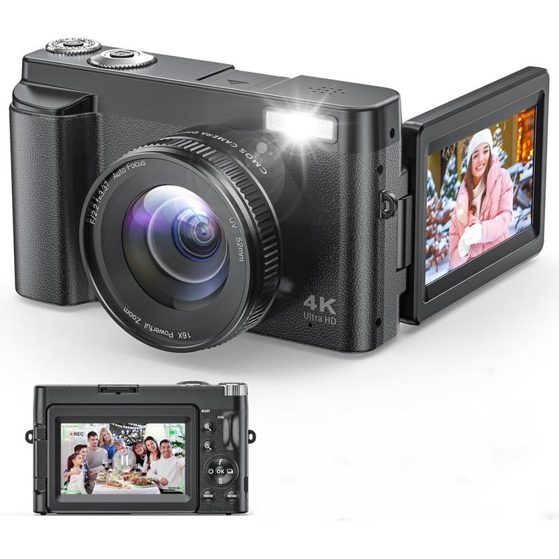 CD01 4K Digital Camera with 3.0-Inch Flip Screen - 16X Zoom Photography and Vlogging Camera wtih 64GB Memory Card