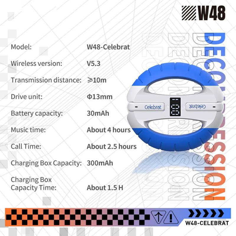 • Celebrat W48 Hand Gripper Wireless Earphones with Bluetooth 5.3, 300mAh Charging Case