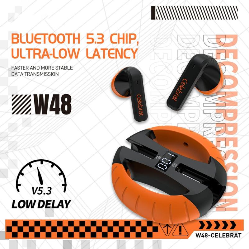 Celebrat W48 Hand Gripper Wireless Earphones with Bluetooth 5.3, 300mAh Charging Case