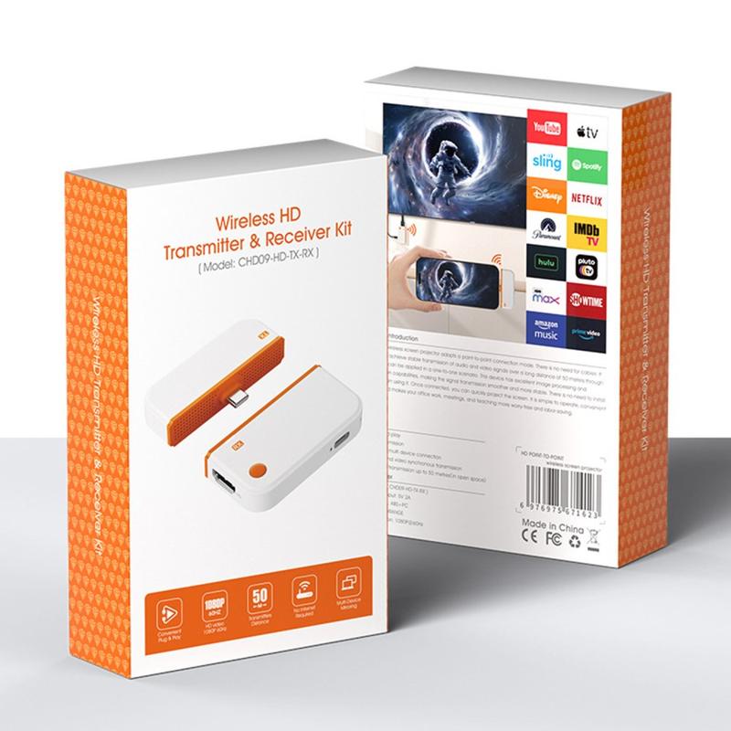 CHD09 Wireless Screen Mirroring Kit - USB-C to HDMI Transmitter & Receiver, 1080p/60Hz, 50m Range, Plug-and-Play Display Adapter