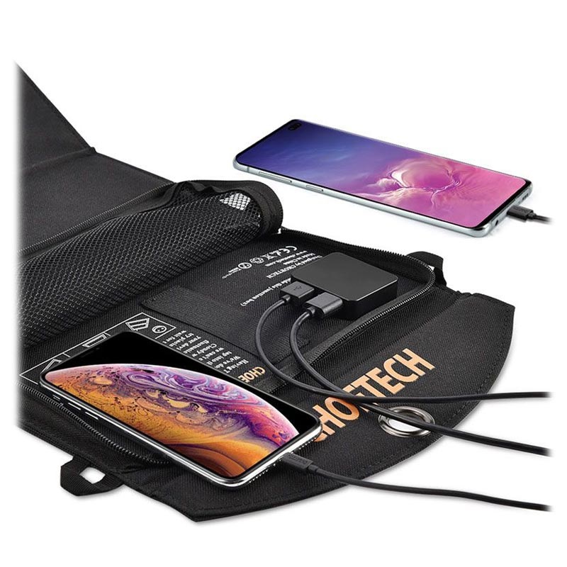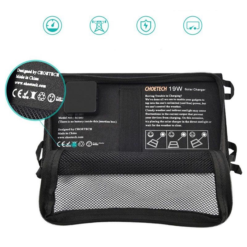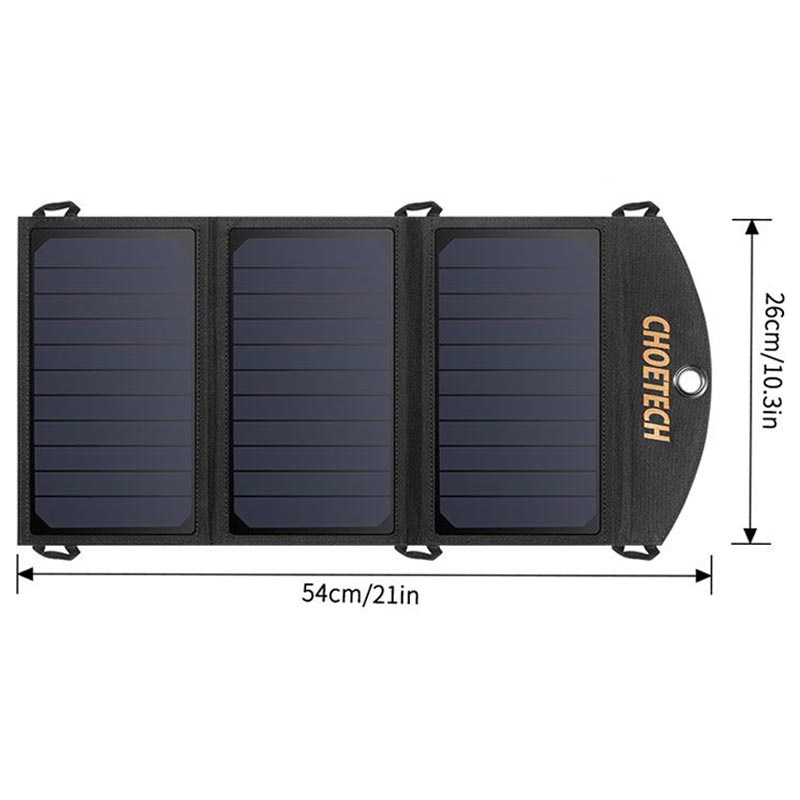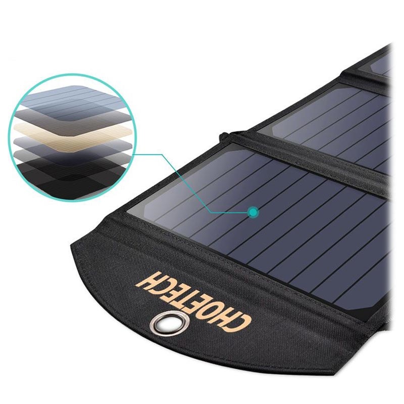 Se solární nabíječkou Choetech 19W můžete udržovat smartphone v provozu kdekoli. Tato tří panelová jednotka s vysokou konverzní rychlostí poskytuje dostatek energie pro nabíjení dvou zařízení až na 2,4A. Umístěte jej na přímé sluneční světlo a automaticky detekuje optimální proud, což zajistí bezpečný a efektivní výkon.