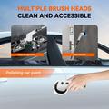 - 8-in-1 cleaning system with interchangeable heads for tiles, tubs, floors, fabric, and polishing