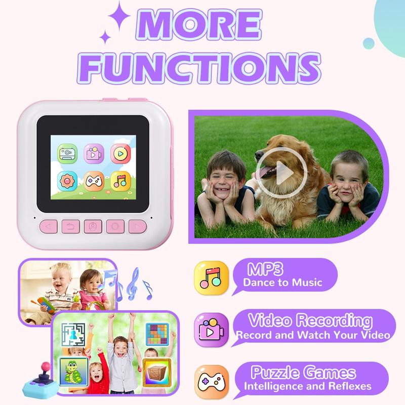 Introduce your child to the world of photography with the CP02 Kids HD Digital Camera, featuring a 2.4-inch IPS screen and built-in thermal photo printer. Equipped with a 32GB TF card and card reader, this camera allows kids to take photos, record videos, and print their creations instantly. The 1500mAh battery ensures long usage, while the durable ABS+silicone construction makes it safe and drop-resistant. With fun features like DIY graffiti, MP3 music playback, and puzzle games, it’s the perfect gadget for creative play.