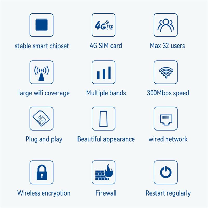 Convert your 4G signal into a Wi-Fi hotspot with a coverage range of 20-30 meters. The router supports up to 32 devices simultaneously, making it ideal for households, small offices, and shared spaces.