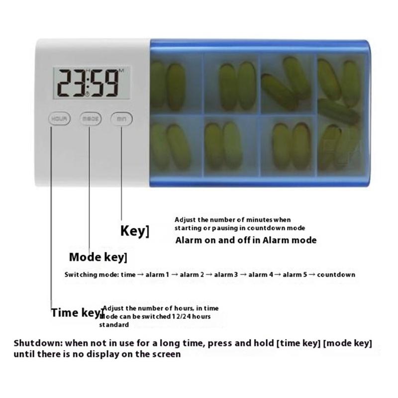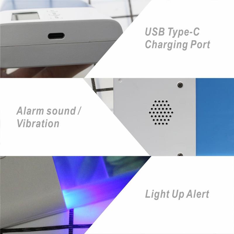 - Countdown timer (up to 23 h 59 min) with vibration + sound—ideal for flexible dosing or short-course medication