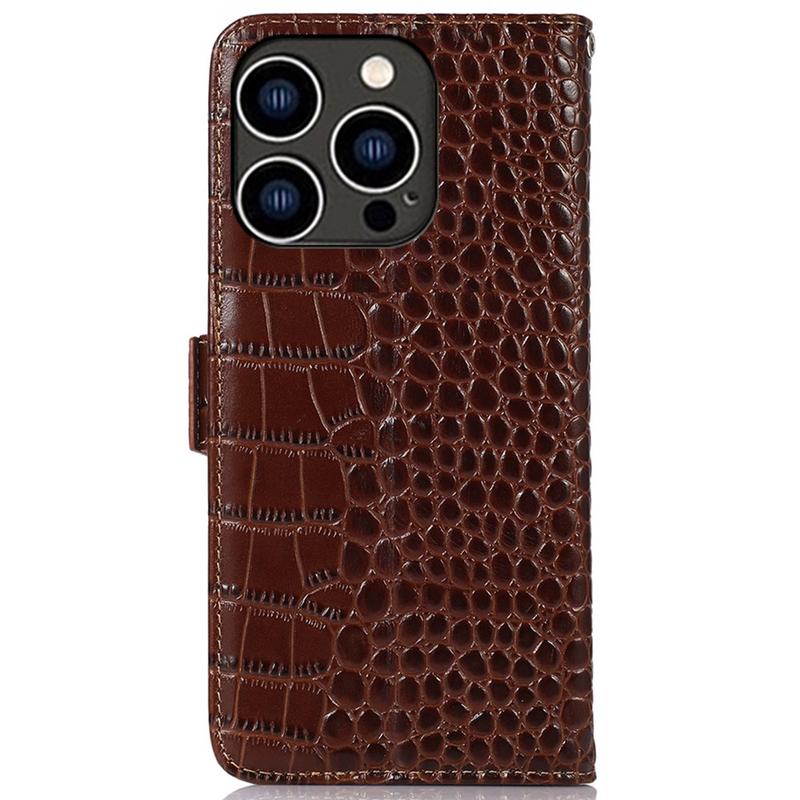 - Crocodile série peněženka kožená pouzdro pro iPhone 16 Pro