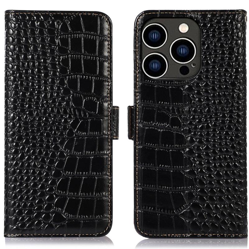 Crocodile Série Kožené Pouzdro na Peněženku s RFID pro iPhone 16 Pro Max