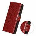 Crocodile Série iPhone 17 Pro Kožené Pouzdro na Peněženku s RFID - Červené