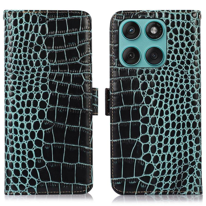 - Crocodile série peněženka kožená pouzdro pro Motorola Edge 60 Fusion