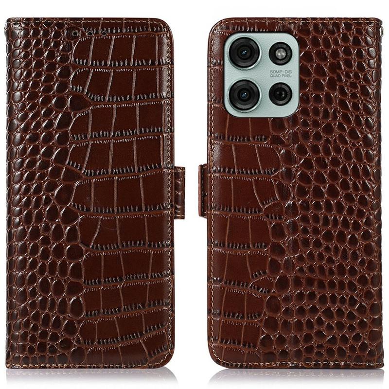 Crocodile Série Kožené Pouzdro na Peněženku s RFID pro Motorola Moto G75