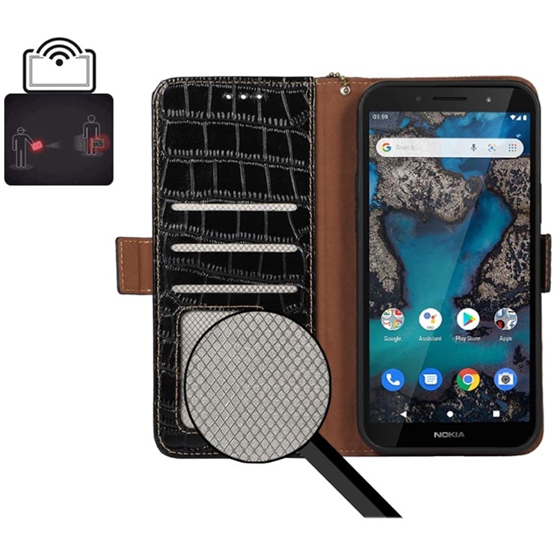 Crocodile Série Kožené Pouzdro na Peněženku s RFID pro Nokia G22