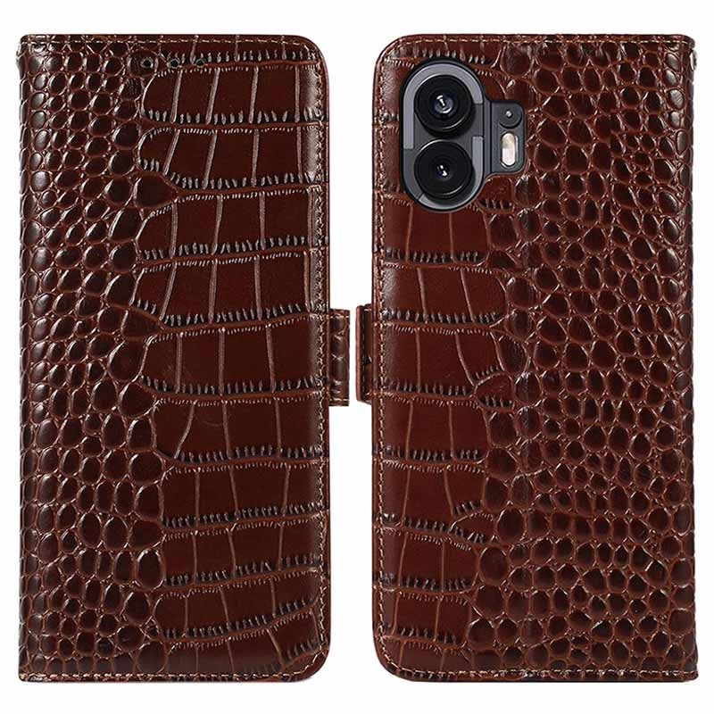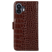 Crocodile Série Kožené Pouzdro na Peněženku s RFID pro Nothing Phone 2