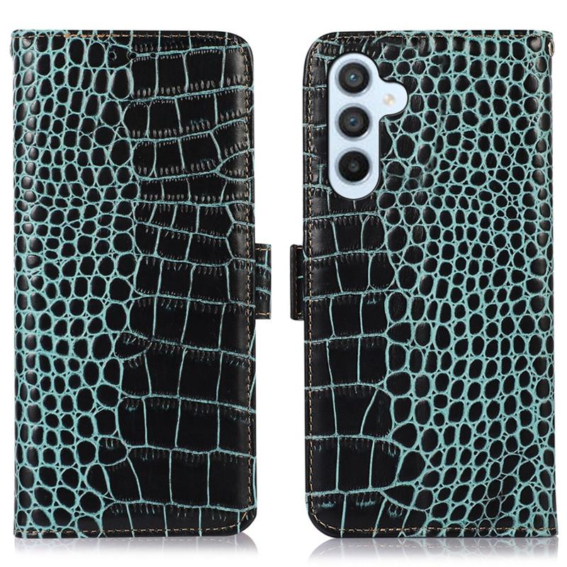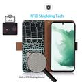 Crocodile Série Samsung Galaxy S23 FE Kožené Pouzdro na Peněženku s RFID - Zelená