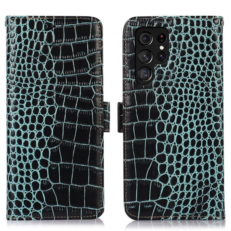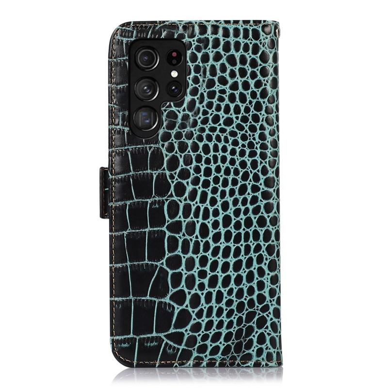 - Crocodile série peněženka kožená pouzdro pro Samsung Galaxy S23 Ultra 5G