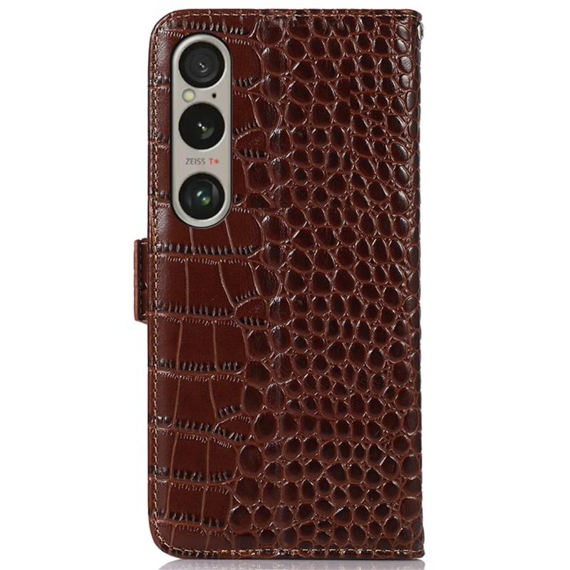 • Crocodile Série Kožené Pouzdro na Peněženku s RFID pro Sony Xperia 1 VI