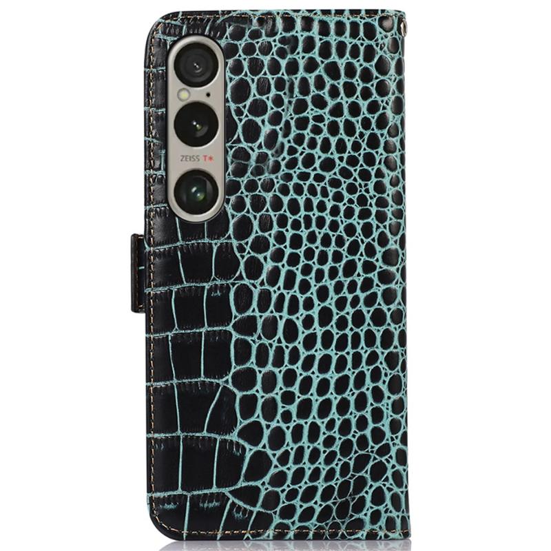 Crocodile Série Kožené Pouzdro na Peněženku s RFID pro Sony Xperia 1 VI