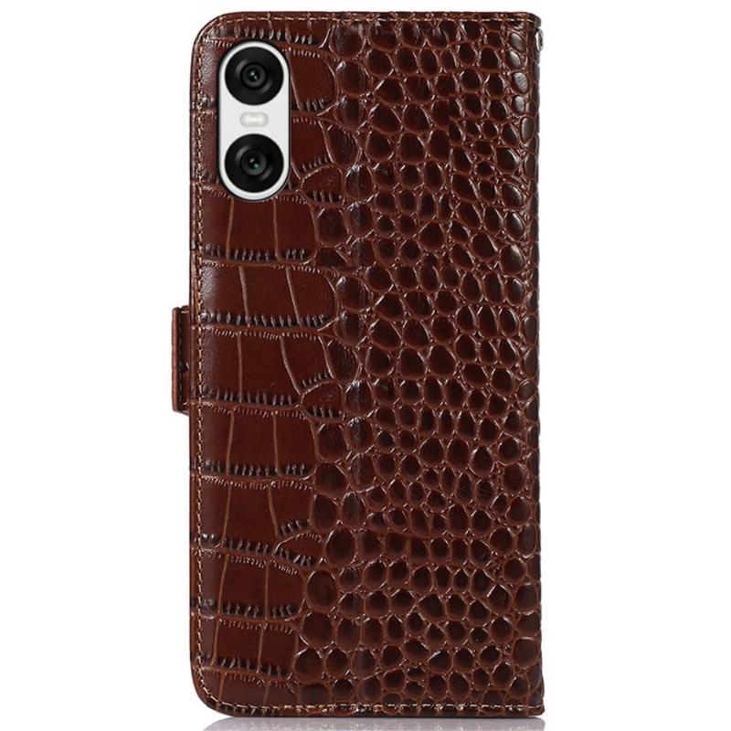 Crocodile Série Kožené Pouzdro na Peněženku s RFID pro Sony Xperia 10 VI