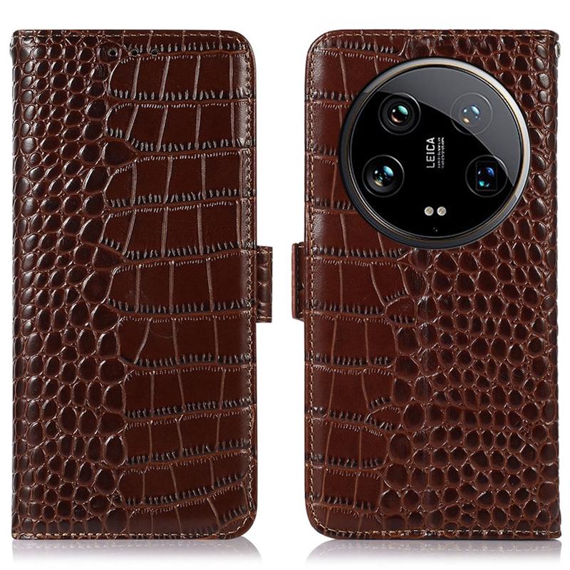 Crocodile Série Kožené Pouzdro na Peněženku s RFID pro Xiaomi 14 Ultra