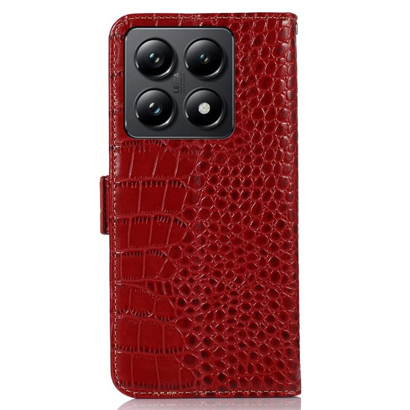 Crocodile Série Xiaomi 14T Pro Kožené Pouzdro na Peněženku s RFID - Červené