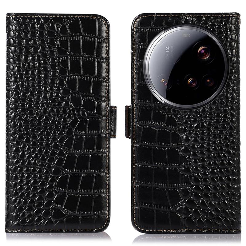 - Crocodile série peněženka kožená pouzdro pro Xiaomi 15 Ultra