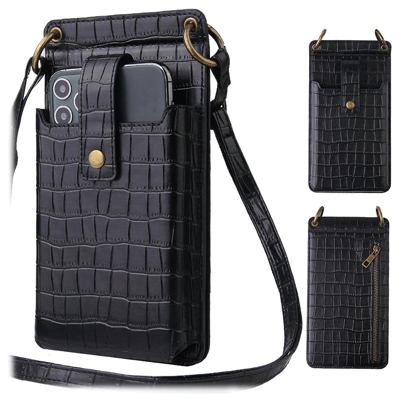 Crossbody Kabelka na Smartphone s Krokodýlím Vzorem se Zrcátkem na Líčení