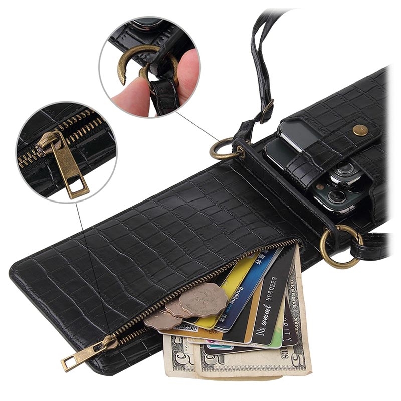 Zabalte si svůj smartphone, ID, kreditní karty a nějakou hotovost do této prémiové crossbody tašky a můžete vyrazit. Je vyrobena z vysoce kvalitního odolného polyuretanu s krokodýlí texturou a slitinovým zipem a přezkou, který bude vypadat skvěle a stylově. Na to je vnitřní make-up zrcátko vhodné pro rychlou kontrolu vašeho vzhledu, ať jste kdekoli.