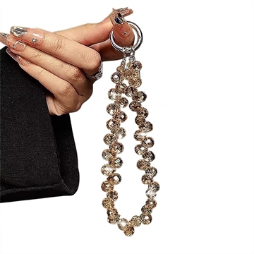 14cm Crystal Bead Phone Strap Chain - Wrist Lanyard Keychain with Clear Tether Tab