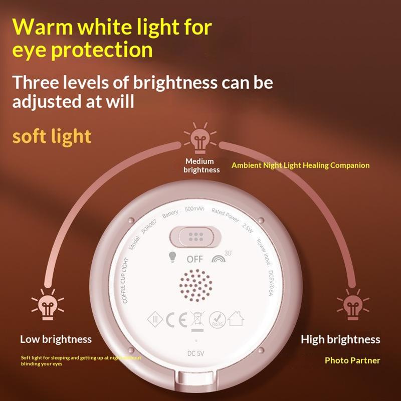 Cute Coffee Cup Night Light with Phone Stand - Tap Control 7-Colour LED Lamp, 3 Warm Brightness Levels, 30-Min Timer, USB-C Rechargeable
