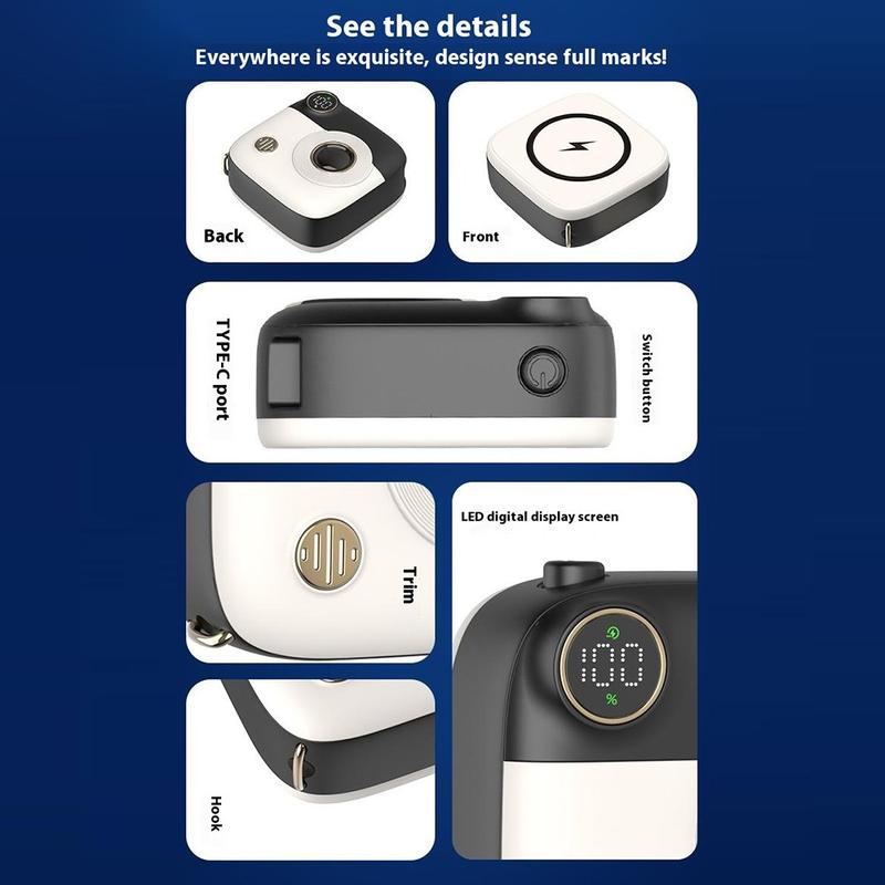 - Unique Design: The camera-shaped design sets it apart from standard power banks.