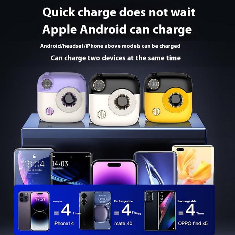 The E49 Power Bank is a stylish and functional accessory designed to keep your devices charged on the go. With its unique camera shape, this power bank not only looks fashionable but also packs a powerful punch with its 10000mAh capacity. It supports fast wired and wireless charging, making it a versatile and convenient tool for travel, vacations, and daily use.
