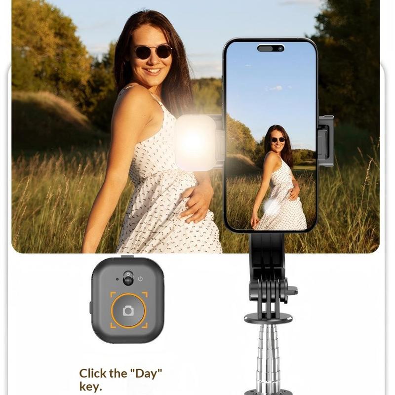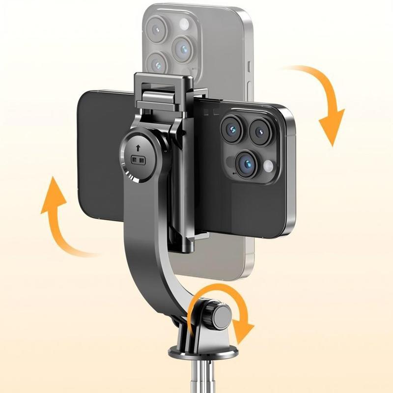 The phone holder supports 360° rotation, allowing horizontal, vertical and overhead shooting. This makes it easy to switch between social media formats, group photos and creative video angles.