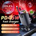 D1 5-in-1 45W PD & QC Car Charger with Star-Light Projector, Aromatherapy Diffuser & Retractable USB-C / Lightning Cables