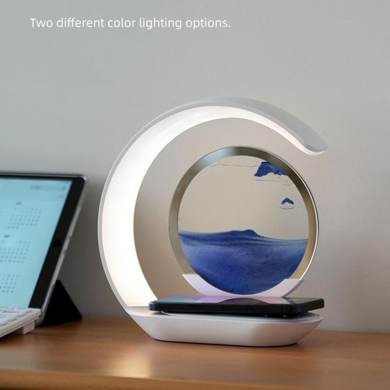 D25 3D Moving Sand Painting Night Light with Wireless Charger - 15W