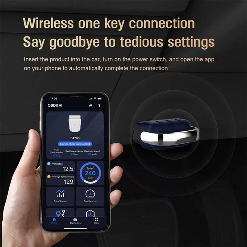 DA200 Bluetooth 5.4 OBD2 Car Diagnostic Scanner - Engine Fault Code Reader with AI Diagnostics, Real-Time Data & Multi-Language App