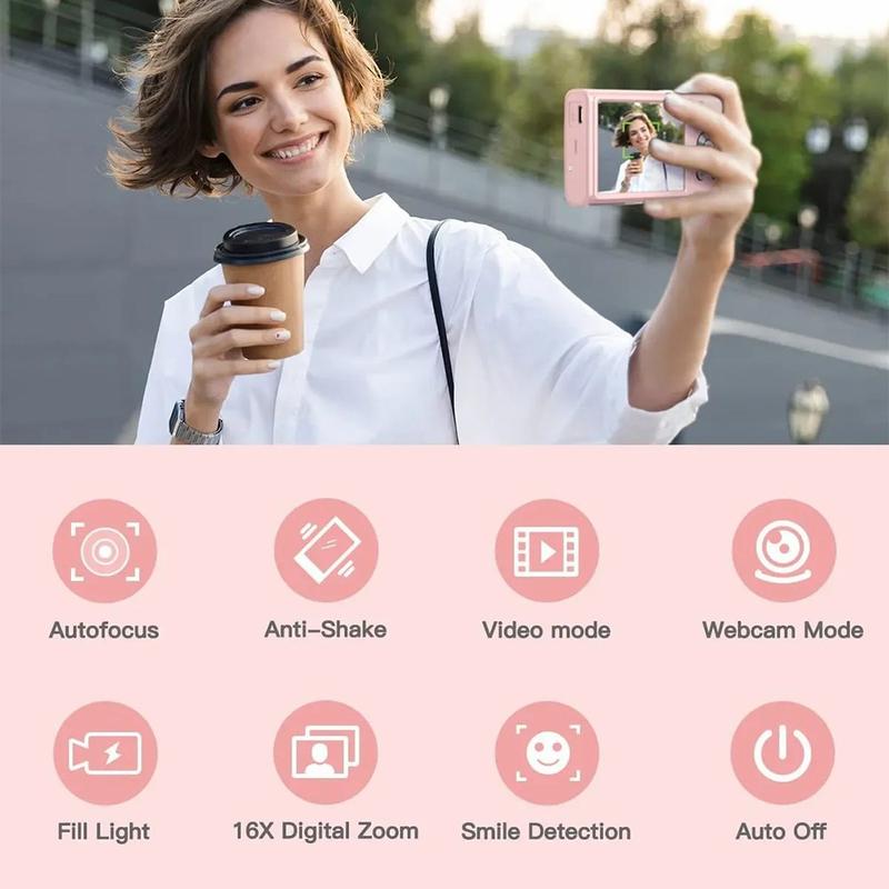 DC402-AF 4K Kids 48MP Digital Camera Auto Focus 16X Digital Zoom Vlogging Camera for Teens - White