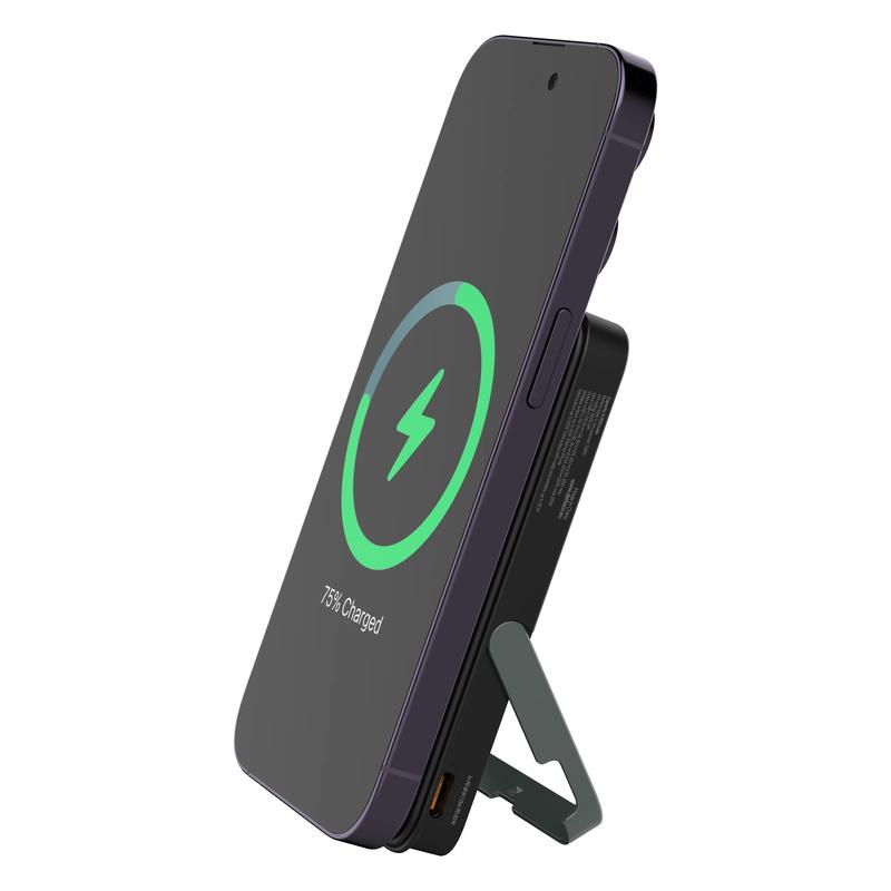 - Magnetic wireless power bank with built-in stand