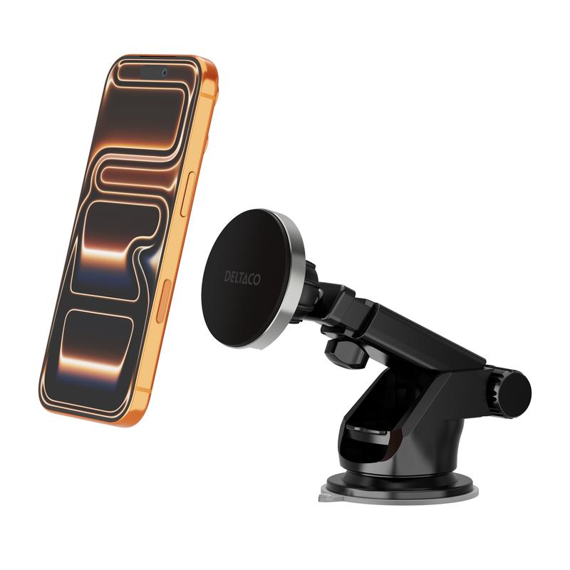 Deltaco Detachable Magnetic Wireless Car Charger - Qi2 15W Phone Mount with Air Vent and Suction Cup Holder