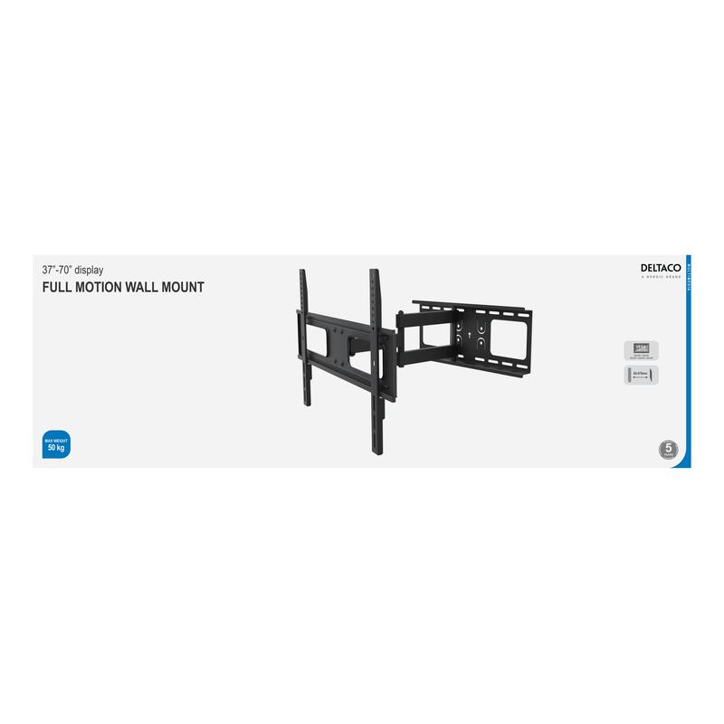 Enjoy ultimate viewing flexibility and convenience with the DELTACO Full Motion Wall Mount. Designed to fit most TVs and monitors from 37 to 70 inches, this durable mount supports up to 50kg and adjusts effortlessly to suit your preferred viewing distance and angle. It’s the ideal solution for anyone seeking a premium, space-saving setup at home or the office.