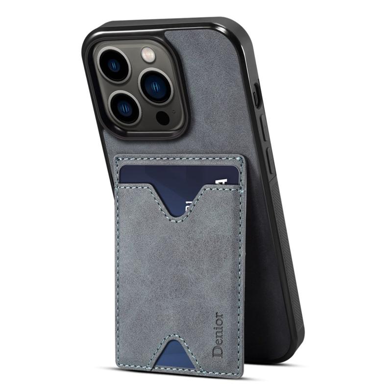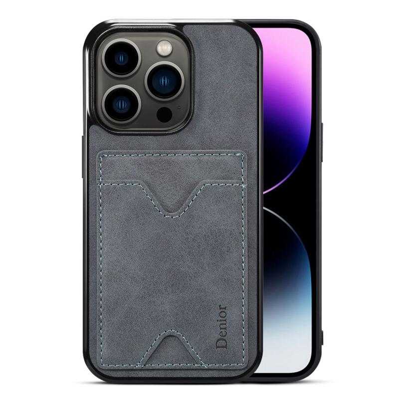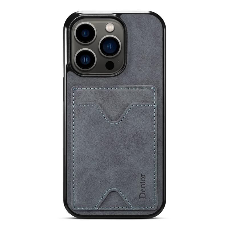 Držák karty DENIOR pro iPhone 14 Pro Kryt na telefon s PU kůží potažený TPU stojánek proti poškrábání
